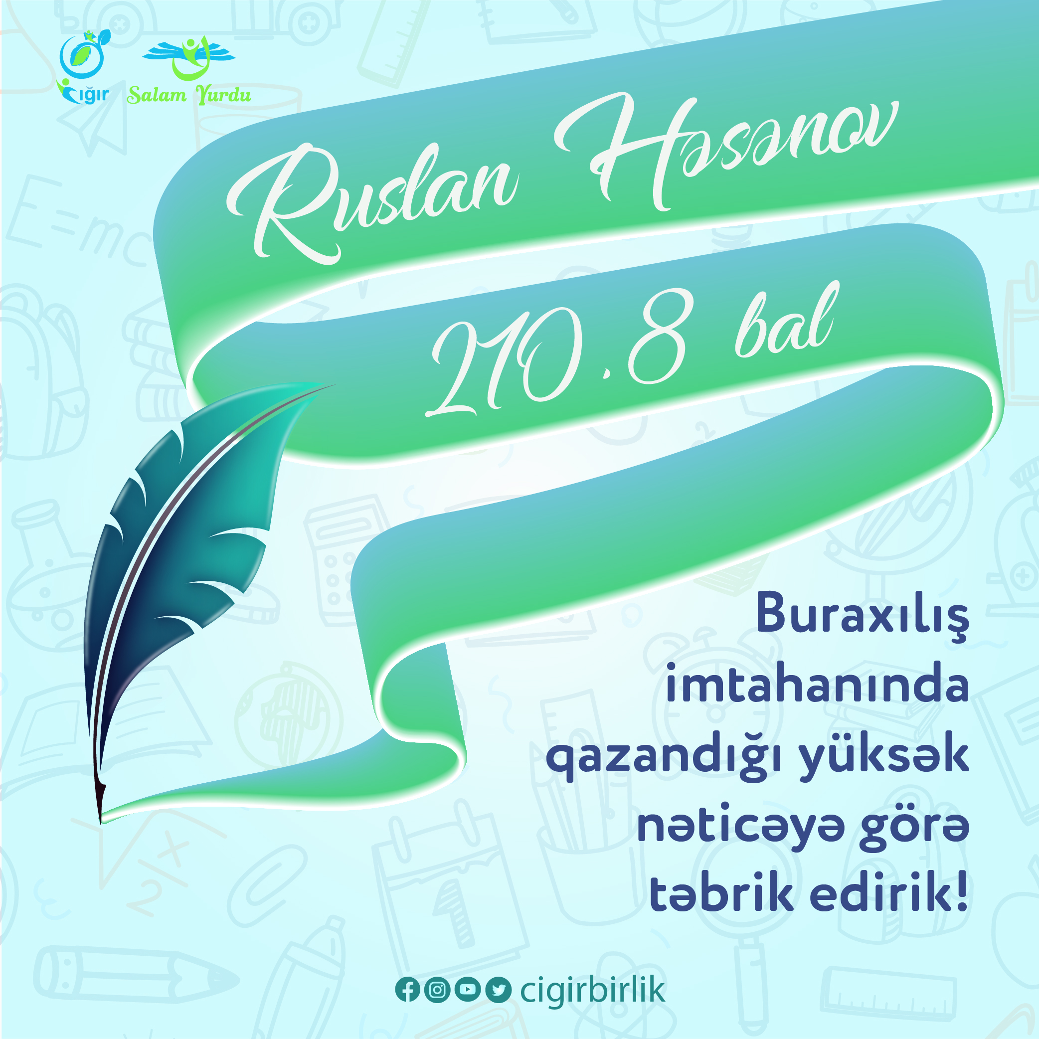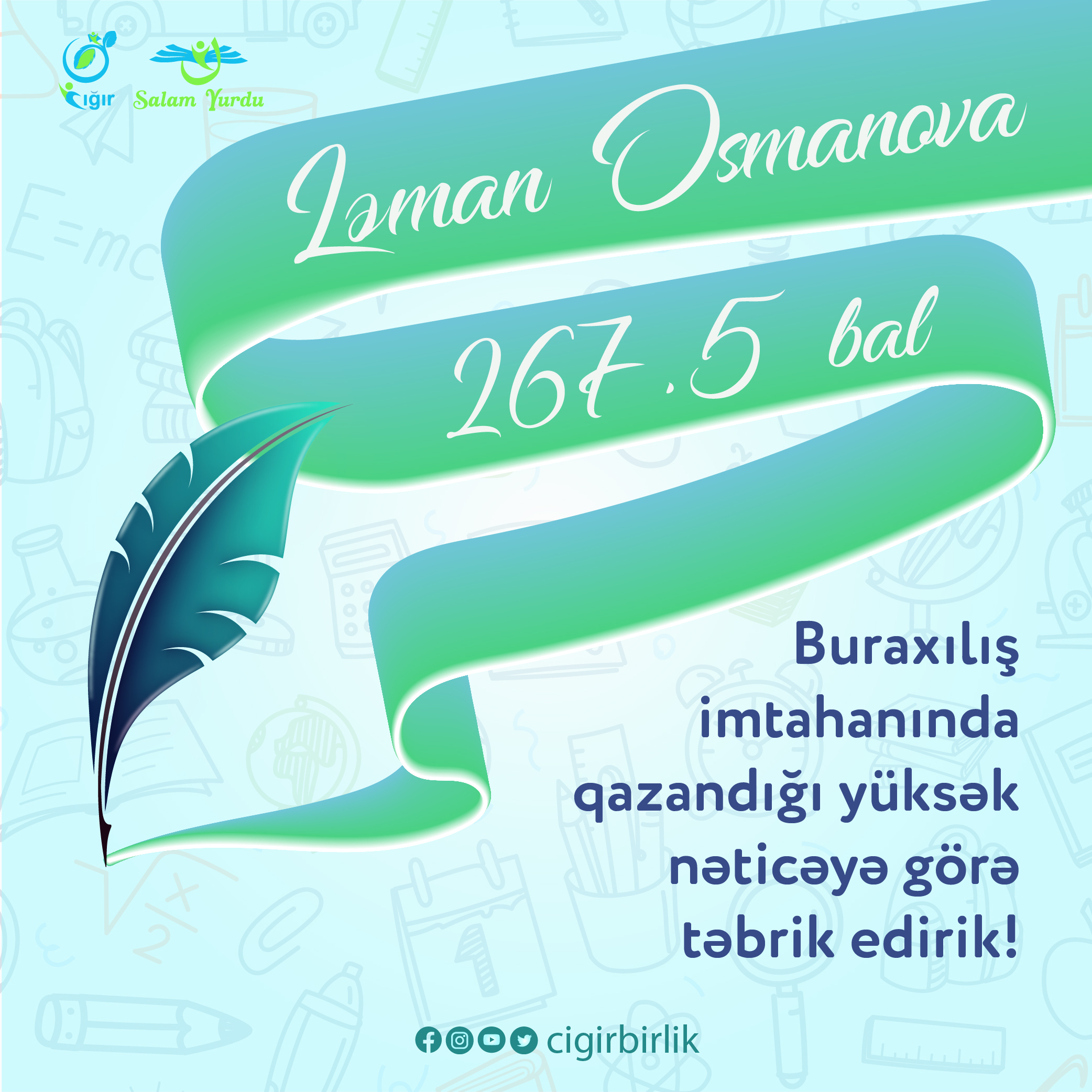 Bu il buraxılış imtahanlarında müvəffəqiyyət qazanan əmanətlərimizi “Cığır” ailəmiz adından təbrik edirik.